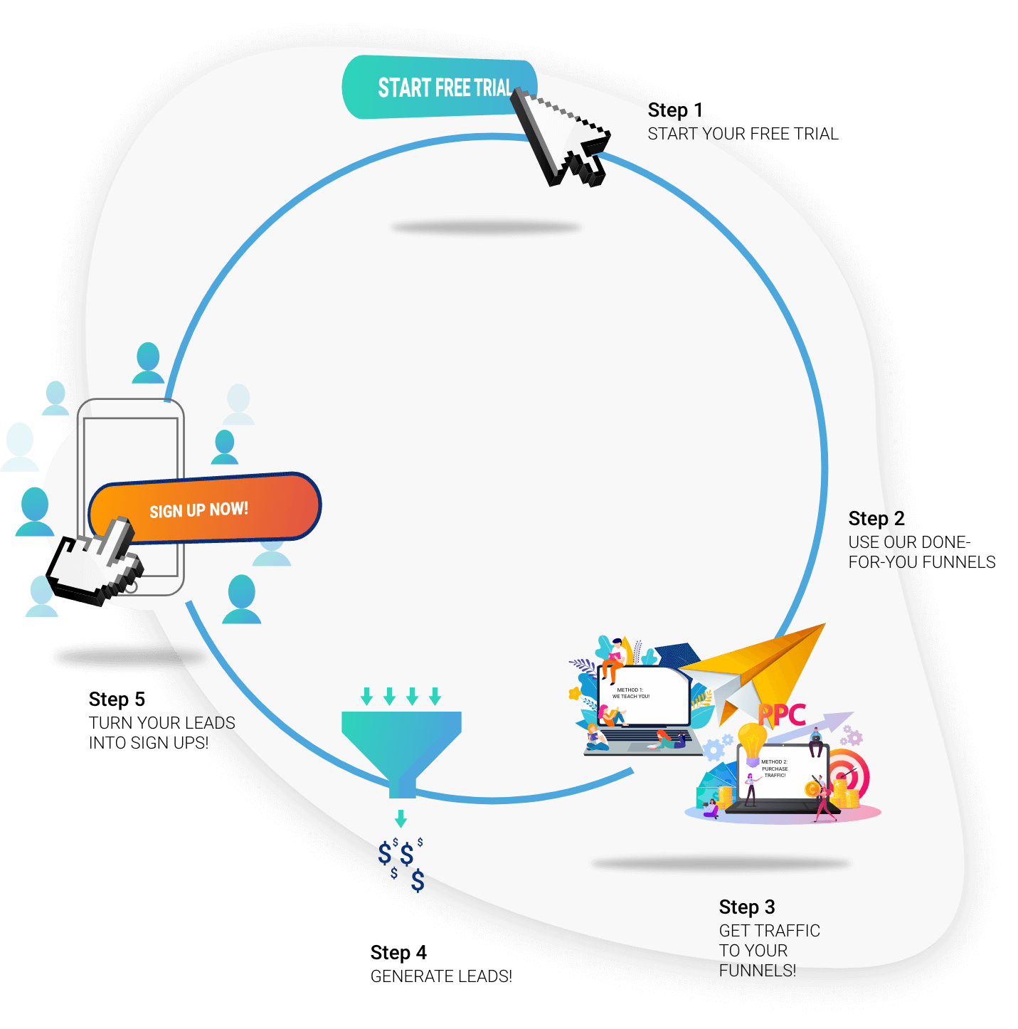 Funnels are useless if you can't get people to go to them, right? Right! We teach you exactly how to generate your own leads, on top of giving you the ability to purchase traffic through this system, and it's super affordable!